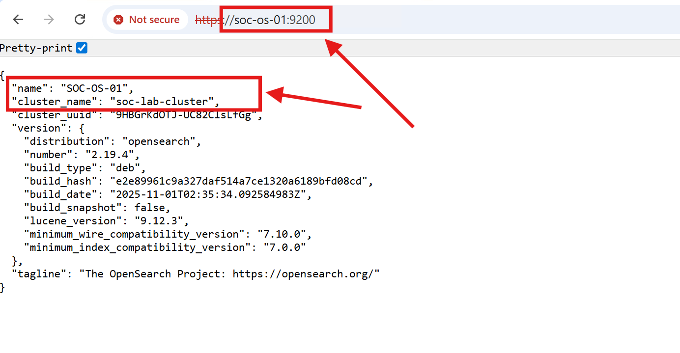 OpenSearch (https://opensearch.org/) acts as the SOC’s centralized data lake and search engine. All logs, telemetry, alerts, and network security events flow into this cluster for long-term storage, fast querying, and correlation. It serves the same role as Elasticsearch or Splunk in larger enterprises, forming the analytical backbone of the SOC.