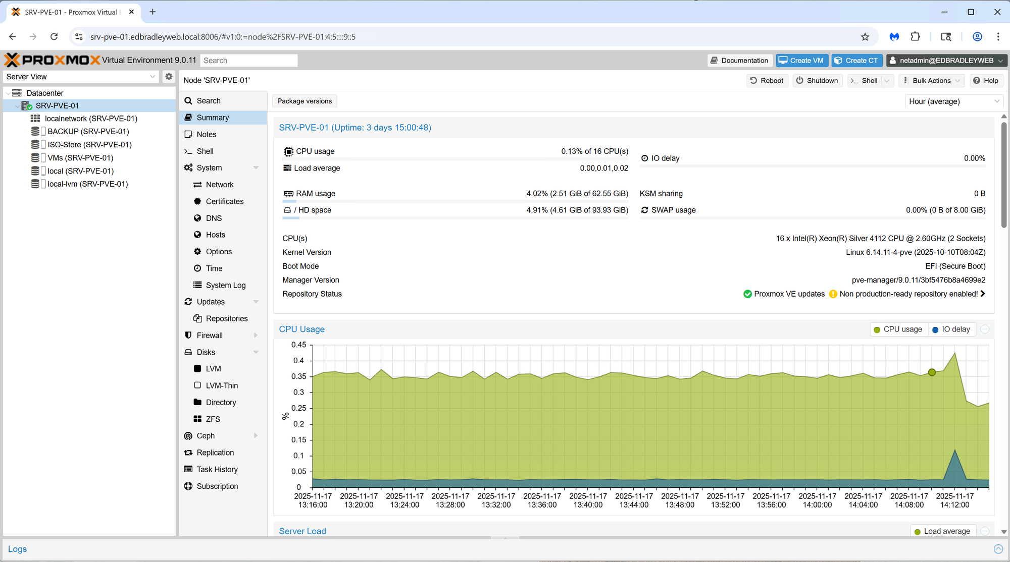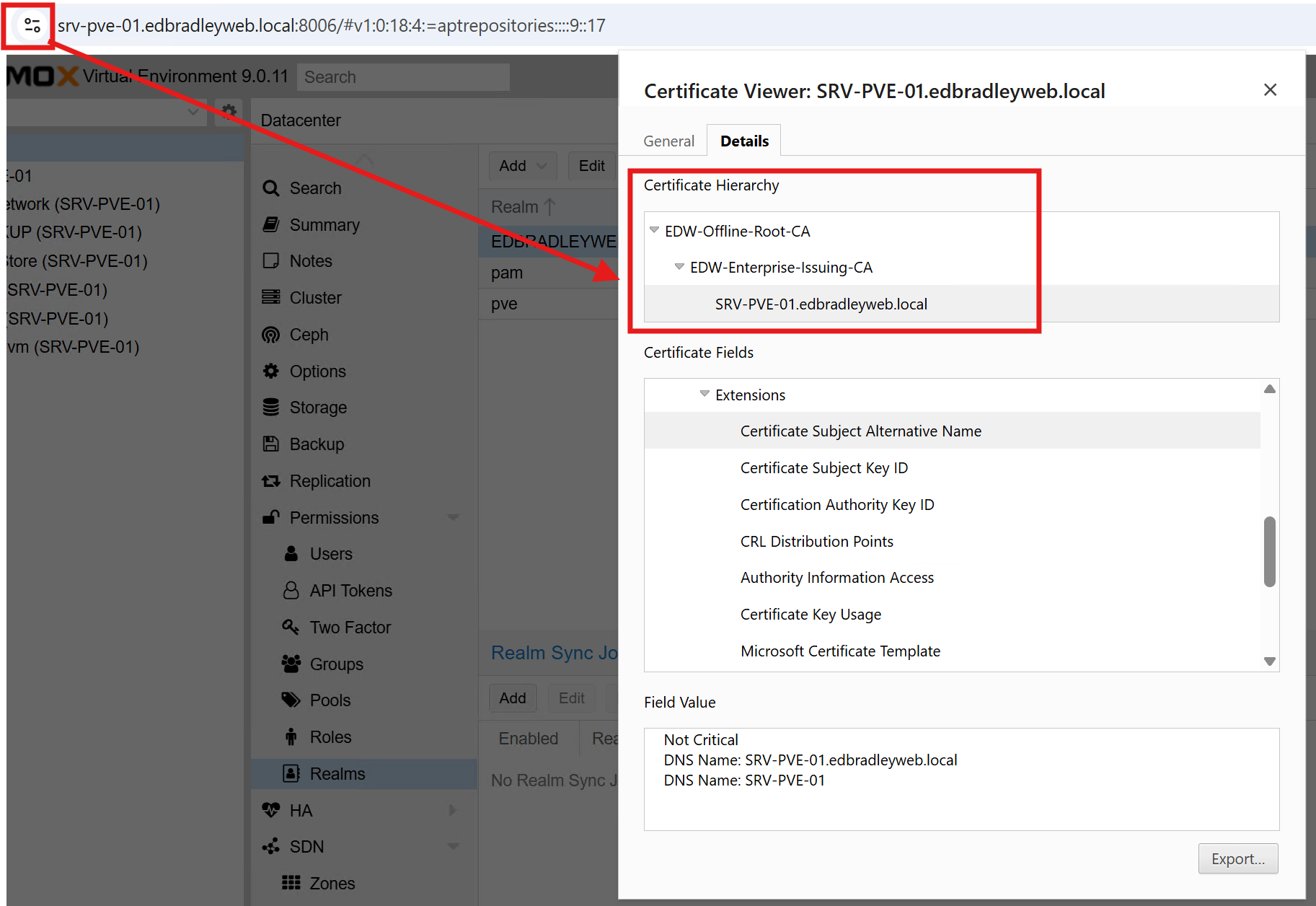 With time now synchronized across the environment, Proxmox meets Kerberos requirements and maintains consistent timestamps for logs, VM snapshots, and SOC-related tooling.