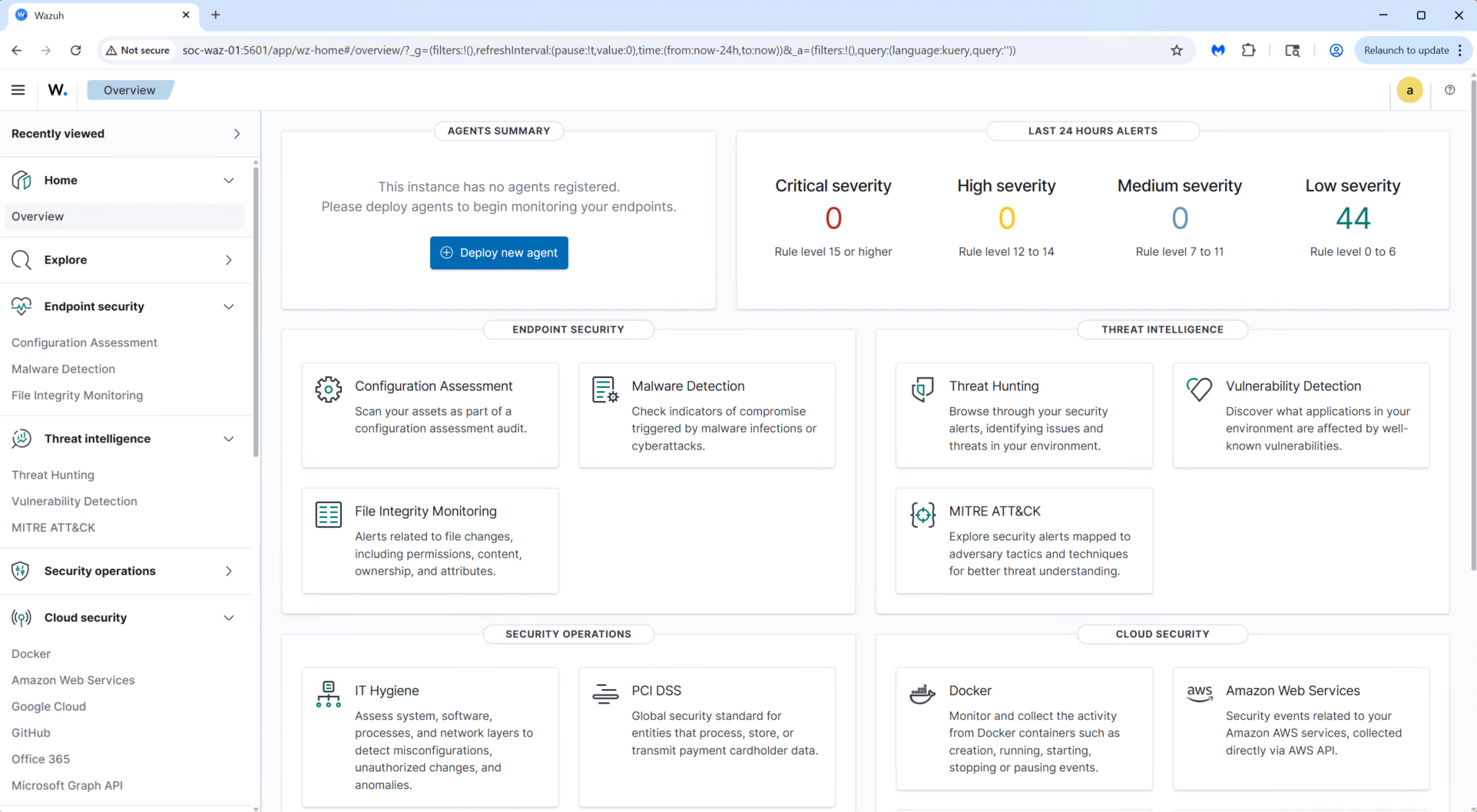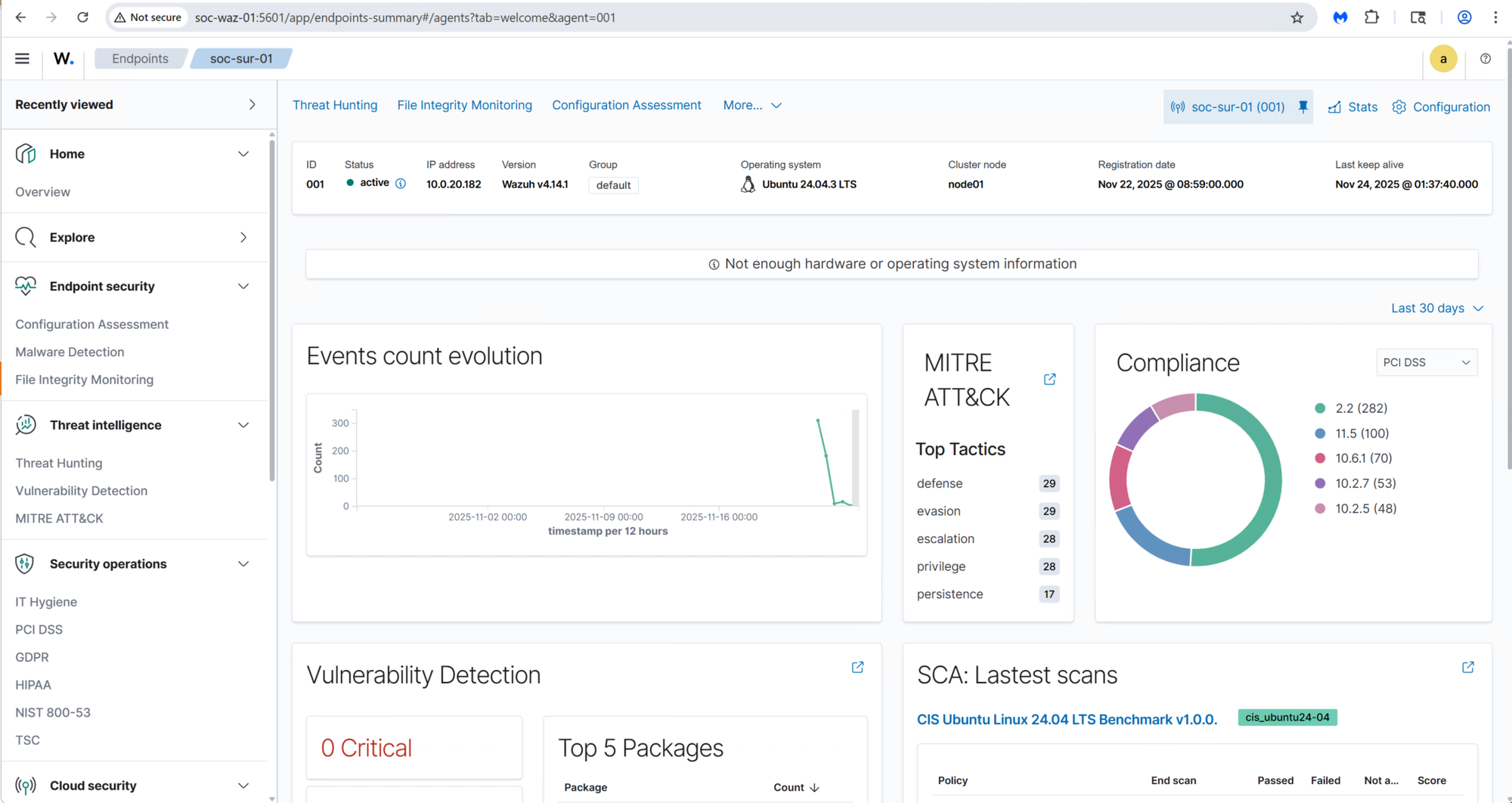 - Security analytics, correlation, and endpoint monitoring (Wazuh)