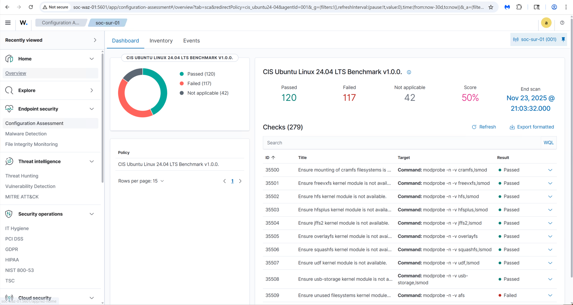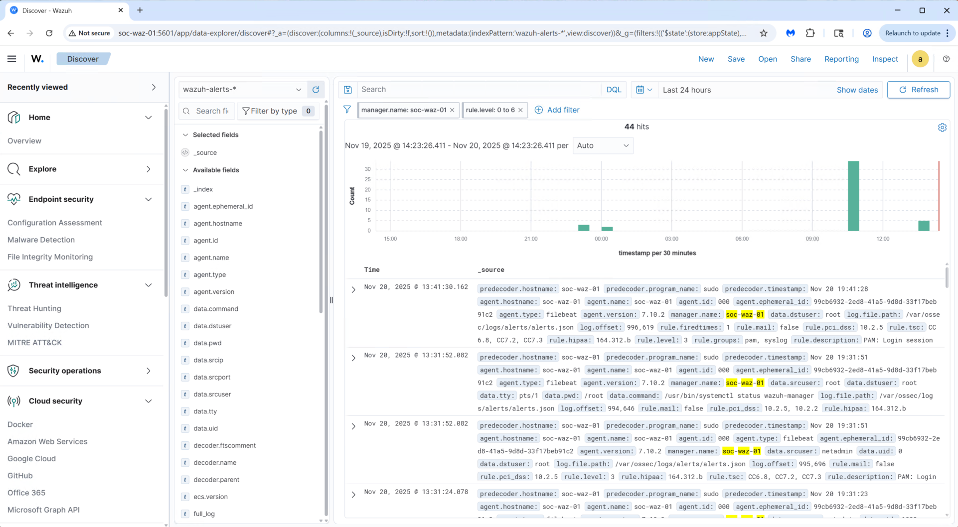 3.) Wazuh Dashboard – Analyst Interface & Visualization Layer: