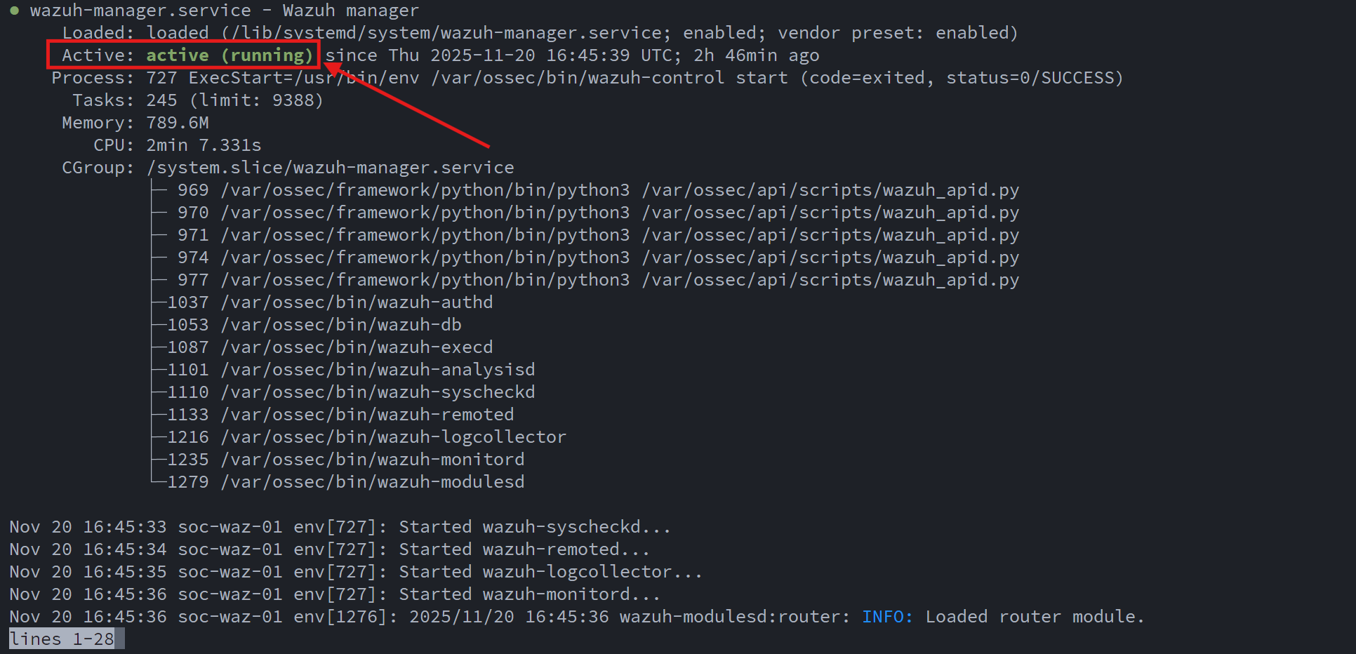 2.) Wazuh Manager – SIEM, Correlation Engine & Host Monitoring: