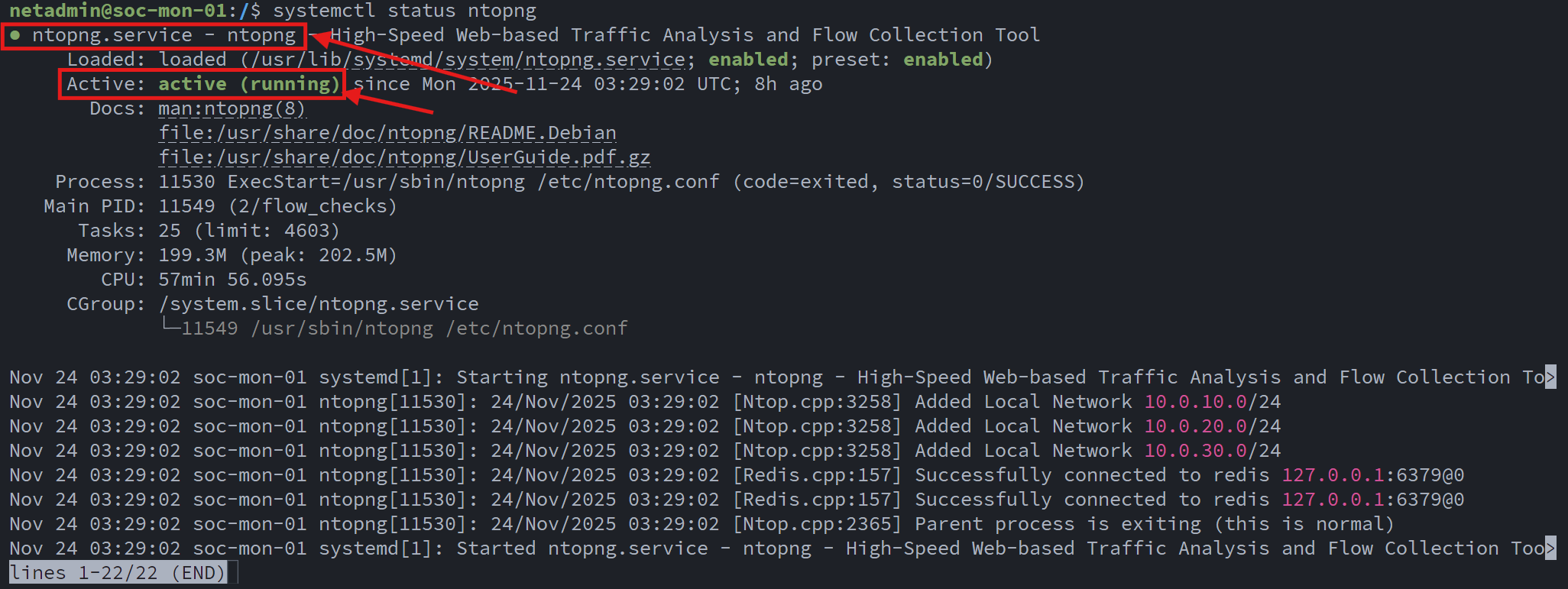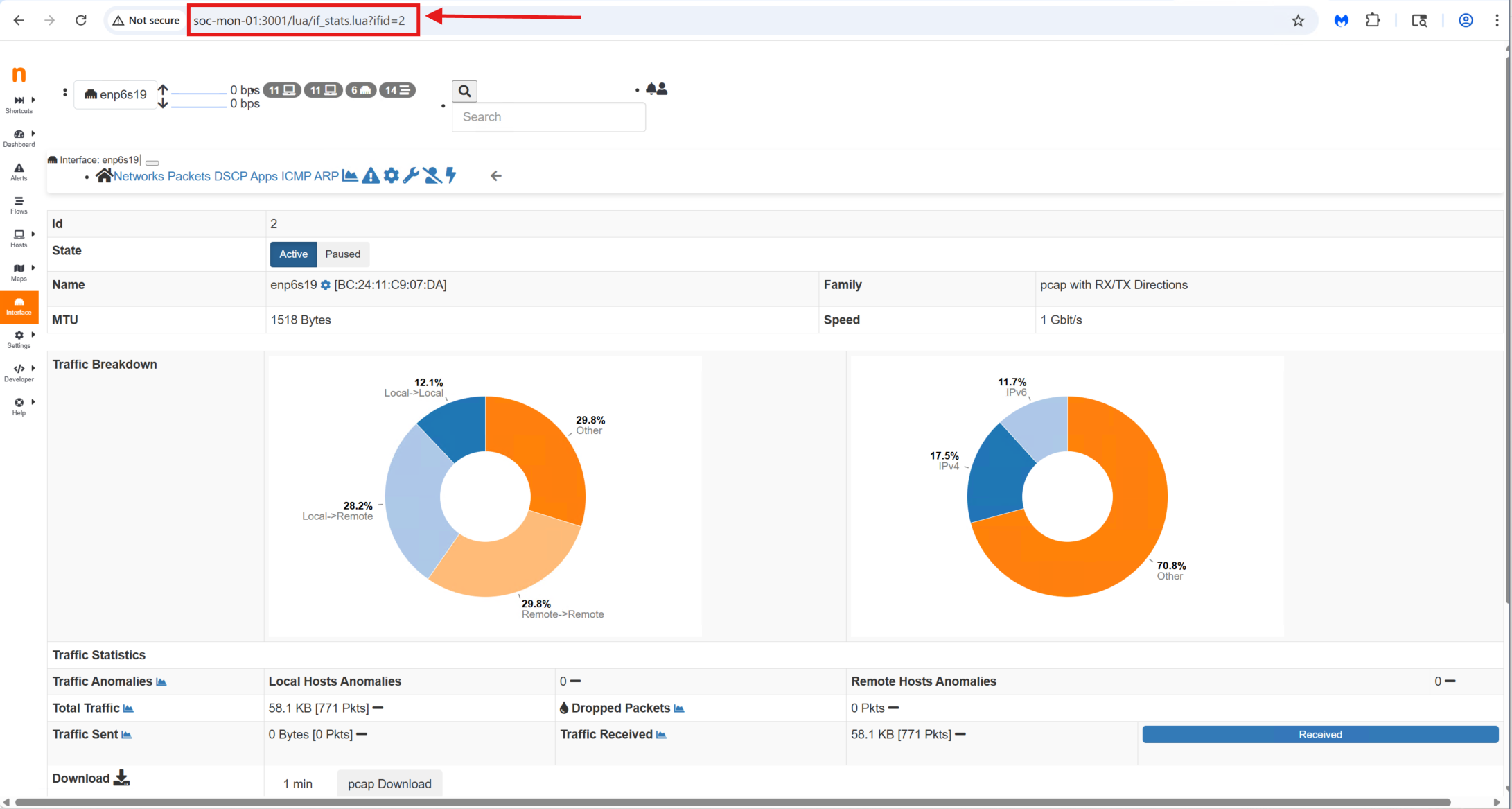 Once the initial configuration was complete, I accessed the ntopng Web UI (http//soc-mon-01:3000):